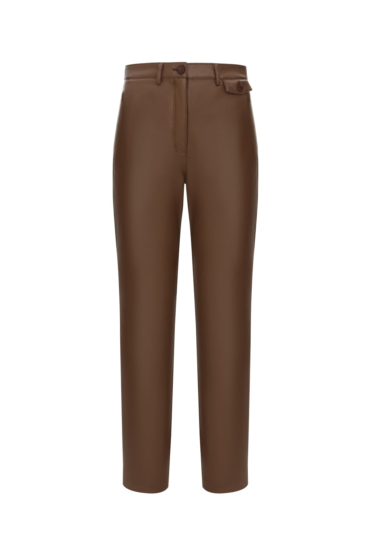 Faux Leather Straight Leg Trouser in Toffee